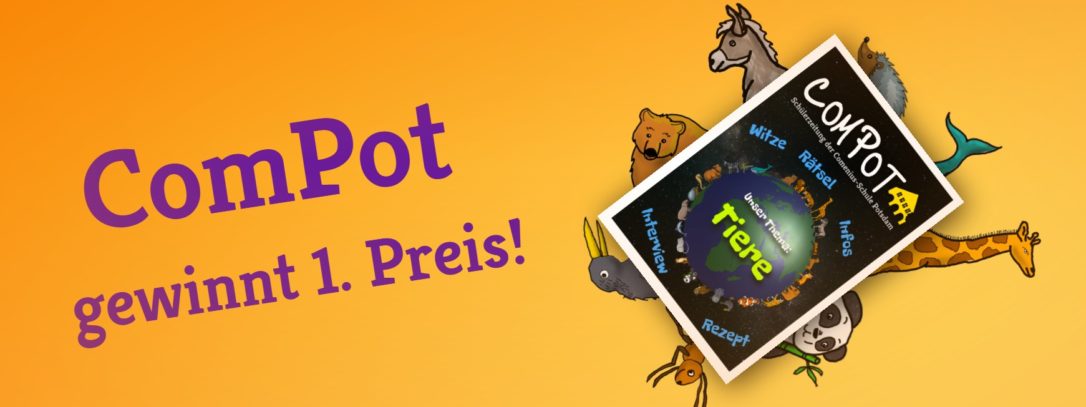 Doch dann wurden wir aufgerufen! Unter den Förderschulen gewannen wir den ersten Preis! Um genau zu sein: unsere ComPot Nummer 11 wurde prämiert. Das war die Ausgabe mit dem Thema Sport. Wir waren ganz schön aufgeregt und haben uns sehr gefreut. Es gab sogar ein Preisgeld von 500€ und ein leckeres Bufett!