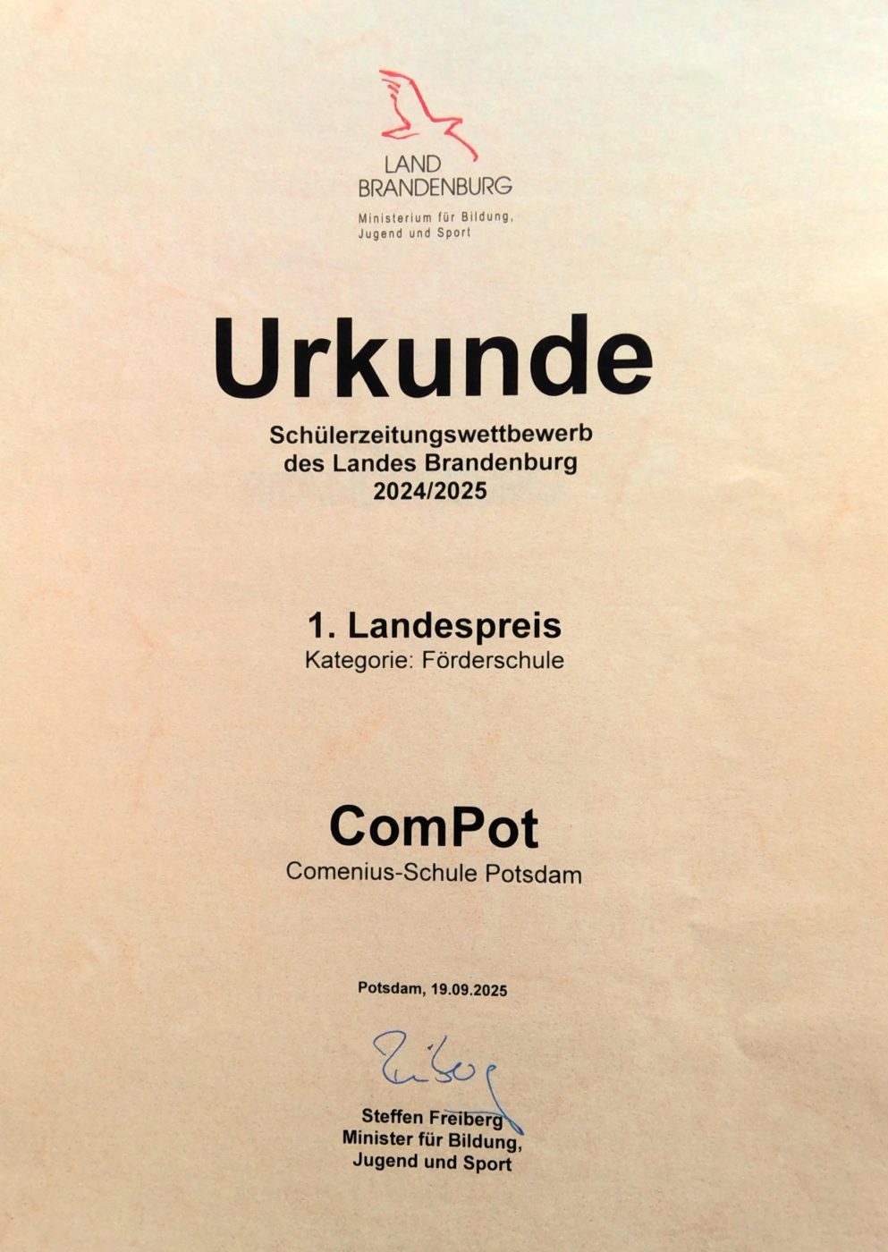 Wir haben am Landeswettberwerb für Schülerzeitungen des Landes Brandenburg teilgenommen und wurden zur Preisverleihung eingeladen.